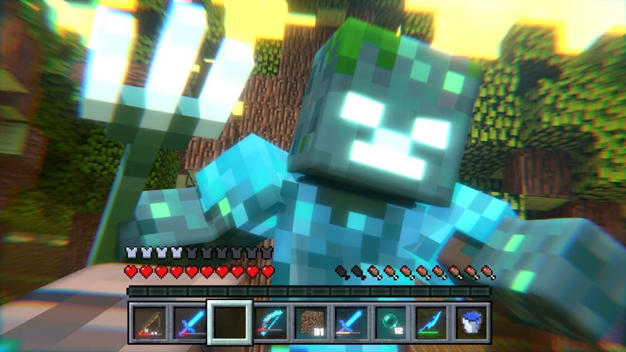 Steve and X_Grave_X continue their fight, however, it is revealed that Grave has a villager head that can be used to make other villagers think they are one of their own kind. Grave uses the head and sends up a black creeper face firework attracting Villager Knights with polar bears to the area, Grave is able to convince the Villager Knights to fight Steve. Steve tries to reason with the Villager Knights, but they continue to believe that players are a threat to their existence and they continue to fight Steve with Grave. The high level of activity starts to attract zombies to the area. Steve is heavily damaged and Grave proceeds to strike the final blow when Steve finds himself back in the past in a vision, with Chris and Greg, he eventually reenters reality and continues his fight with the Villager Knights and Grave. Grave receives a message from Herobrine Greg, telling him that something powerful is headed toward him. Grave abandons his disguise by attacking a Villager Knight and Greg, hiding behind a tree, finishes him off with arrows. The Blue Demon suddenly leaps out of the trees and attacks the remaining Villager Knight who ender pearls off into the distance, the Blue Demon then knocks out Steve with a single blow and then goes off after the Villager Knight. Grave wanted to finish Steve and take his items, but Greg tells him not to. Steve then spots Greg and calls out to him. The Blue Demon is then seen killing the Villager Knight and then running up to Steve asking if he is his enemy.
