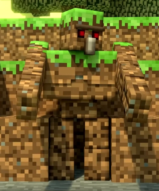 From the foot to the shoulders, the Golems are shaped and made from dirt. It’s shoulder blades and heads are covered with grass whilst the face is also created from dirt. The Monobrow is chocolate brown, the nose is a lighter shade of brown, and in contrast to the main colour of the body parts, the eyes are red.