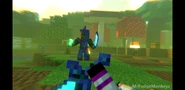 He battled the Red Villager Knight reinforcements, but failed and got nearly killed by a Red Iron Golem Warrior's Iron Speed. Later he was possessed by Glaive Herobrine who appears later and infected the Red Villager Knights as they become Zombie Villagers.