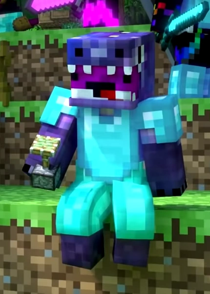 Jesse usually wears blue-enchanted diamond armor (in Annoying Villagers 54; his chestplate broke) and looks like a purple/magenta derpy guy wearing a galaxy-looking dinosaur suit.