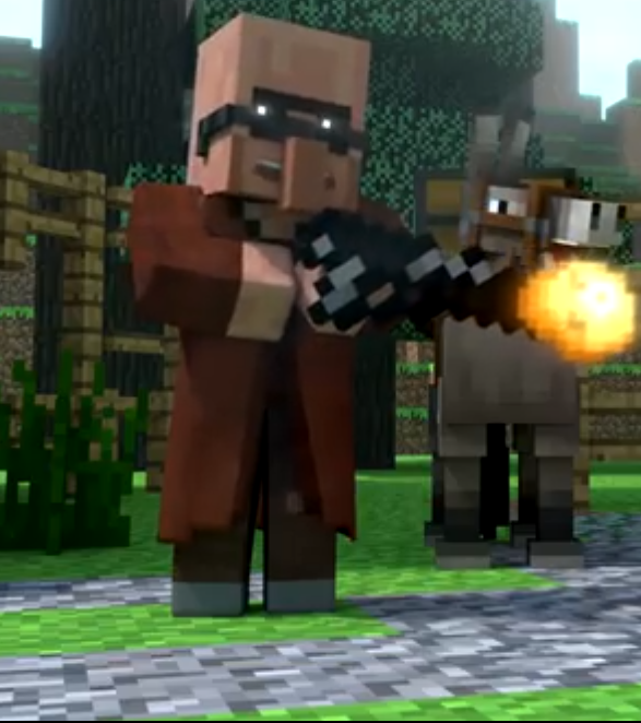 Jev is a deuteragonist in Annoying Villagers series who serves as Alex's sole companion. A clever and obliged villager, he was once a member of a Villager Scout Squad assigned to spy on the Purple Banana of Death clan. Being the sole survivor of his squad, he continued spying on Alex until at some point decided to accompany her. He appears to own a donkey.