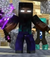 Shadow Herobrine glared on, with Greg Herobrine standing behind him. Herobrine Aside then leapt with his axe raised for the kill. Blue Demon swiftly turned around and caught him and his Axe in mid-air, using his special move to electrify both Herobrine Vessels. Swordsman Herobrine took the opportunity to lash his sword out at Blue Demon, of whom backflipped away and used his tridents to expertly leap his way out.