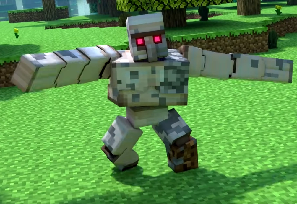 Most of its body is iron with bits of stone and a dirt foot. Its other features are that of a regular Iron Golem.